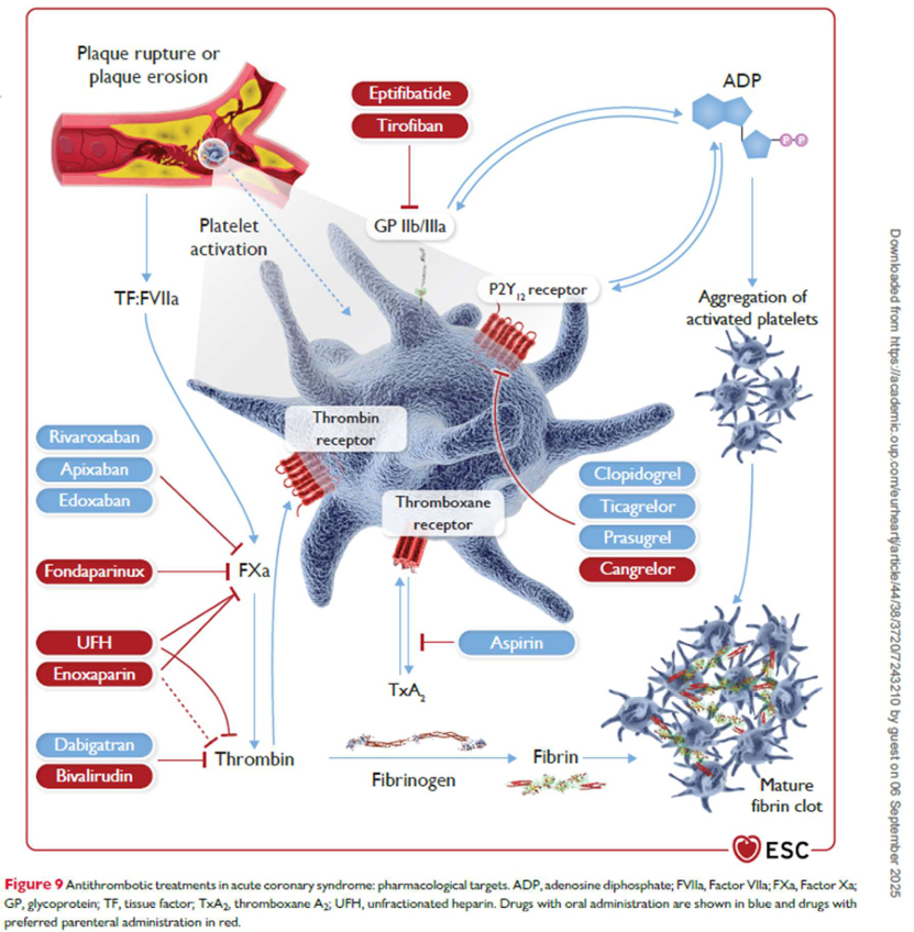 A trombose intracoronariana é um evento crítico envolvido nas síndromes coronarianas agudas (SCAs), incluindo o infarto do miocárdio com elevação do segmento ST (STEMI) e sem elevação do segmento ST (NSTEMI), bem como a angina instável¹⁶¹⁵.