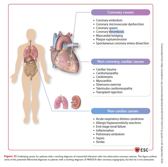 No entanto, existem outros mecanismos fisiopatológicos, menos frequentes, que podem levar à formação de trombos nas artérias coronárias.